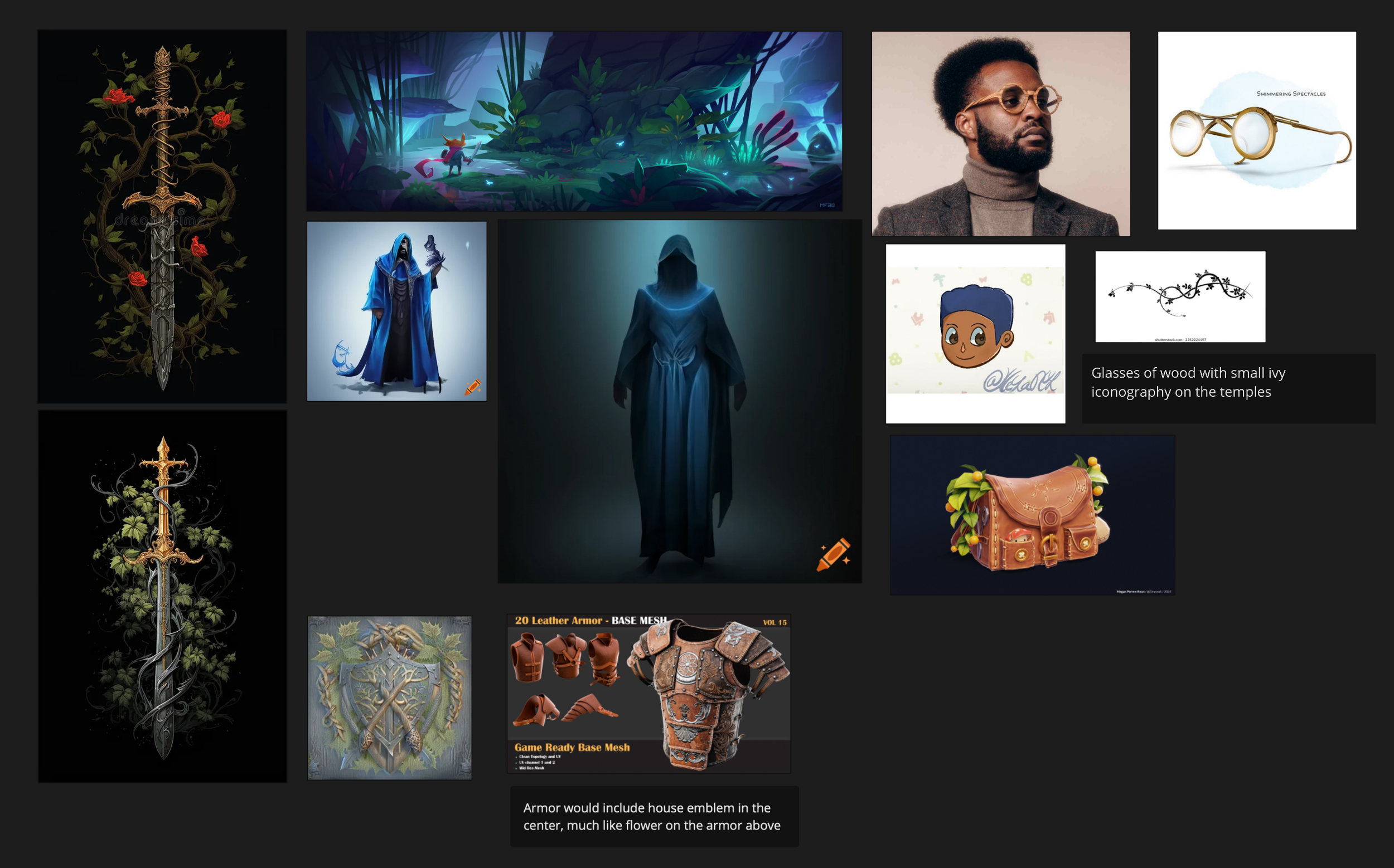 The first step in designing a compelling character is considering the colors, items, and detailing you want to use to show a story. Through platforms like PureRef, I create concept sheets that captured the intention I had with my character’s story and direction.